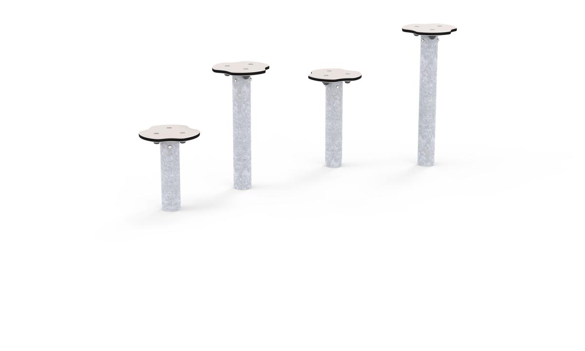 Steg stones skapar en sammanhängande lekplats Steg stones i Pirates-serien är användbara för att koppla samman piratuniversum med en befintlig lekplats. På så sätt kan alla lekredskapen bli en del av en större balanseringsbana. Stegstenarna finns i fyra olika höjder, vilket säkerställer att det är möjligt att designa en balanseringsbana för barn i alla åldrar. Stegstenarna används ofta i spel som ”golvet är lava”, ”tagg” och för att tävla mot varandra. När barn hoppar från en språngbräda till en annan tränar det deras grovmotorik, balans och koordination. De galvaniserade stålstolparna säkerställer en solid och underhållsfri konstruktion. Dessutom har stegstenarna en halkfri yta. Varför välja LEDON Pirates? Lekaktiviteterna på piratlekplatsen är till 100 % inspirerade av barn och bygger på barns idéer om lekaktiviteter med pirattema. I Pirates har flera innovativa lekaktiviteter utformats som stimulerar till rollspel, social interaktion och fysisk lek, till exempel den vingliga plankan. Fartygen finns i många olika prisklasser och nya element kan enkelt läggas till i universum. Piratskeppen är indelade i zoner så att flera åldersgrupper kan leka samtidigt utan att störa varandra.
