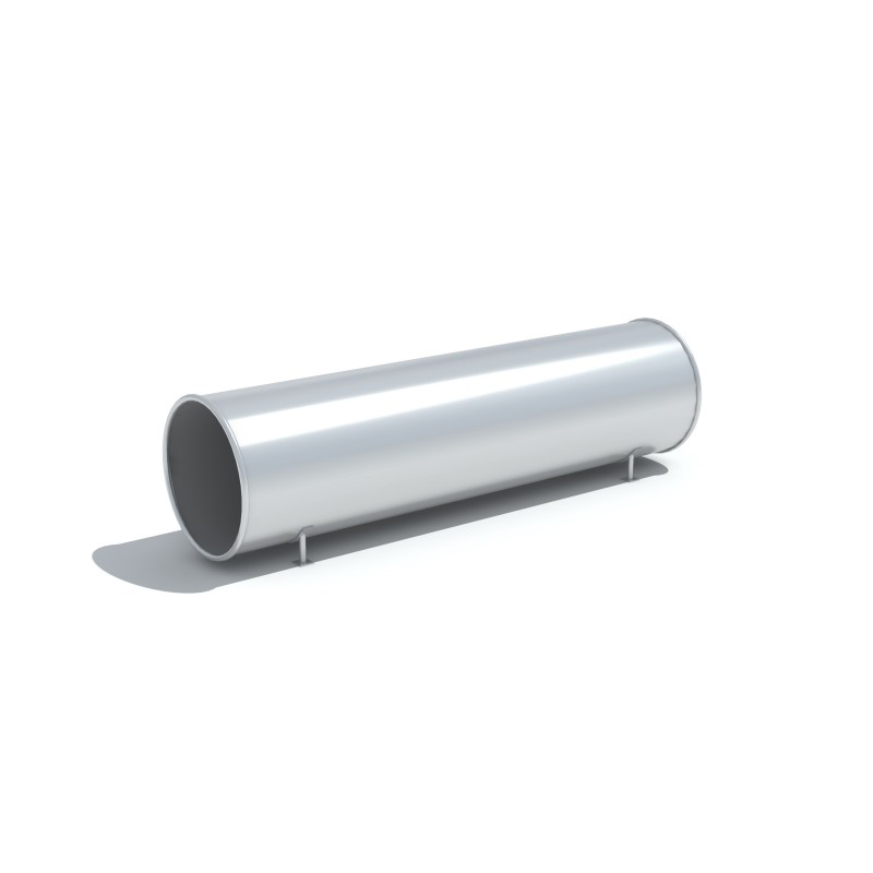 Tunnelrör i cirkulär form för installation i naturliga eller anlagda vallar. Rutschkanans längd är 3,00 m och diametern 0,85 m. In- och utgång är skurna vinkelrätt mot tunnelns axel. Tunneln är helt tillverkad av matt rostfritt stål.