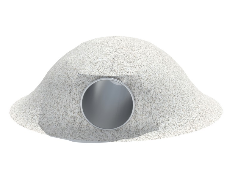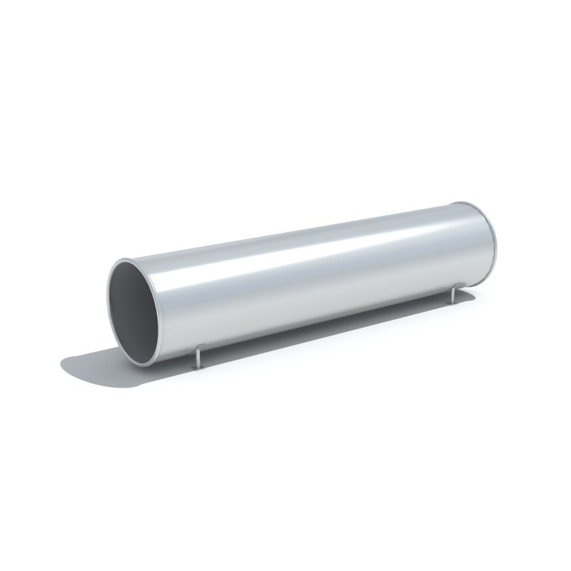 Tunnelrör i cirkulär form för installation i naturliga eller anlagda vallar. Rutschkanans längd är 3,50 m och diametern 0,85 m. In- och utgång är skurna vinkelrätt mot tunnelns axel. Tunneln är helt tillverkad av matt rostfritt stål.