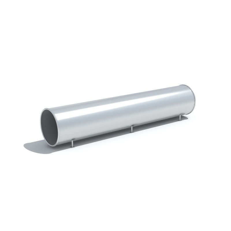 Tunnelrör i cirkulär form för installation i naturliga eller anlagda vallar. Rutschkanans längd är 4,00 m och diametern 0,85 m. In- och utgång är skurna vinkelrätt mot tunnelns axel. Tunneln är helt tillverkad av matt rostfritt stål.