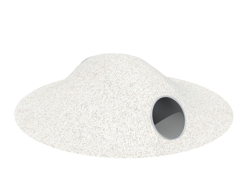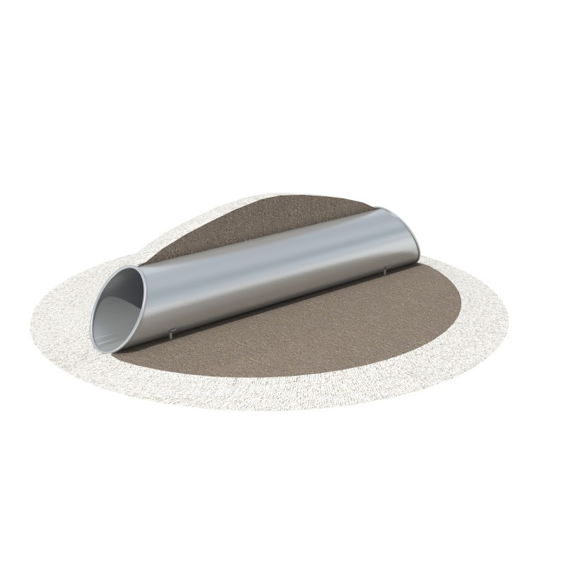 Tunnelrör i cirkulär form för installation i naturliga eller anlagda vallar. Rutschkanans längd är 3,50 m och diametern 0,85 m. In- och utgång är skurna i 30° vinkel mot tunnelns axel. Tunneln är helt tillverkad av matt rostfritt stål.