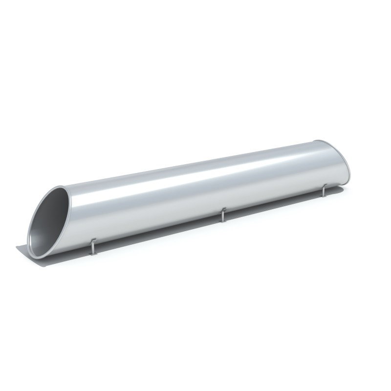 Tunnelrör i cirkulär form för installation i naturliga eller anlagda vallar. Rutschkanans längd är 4,50 m och diametern 0,85 m. In- och utgång är skurna i 30° vinkel mot tunnelns axel. Tunneln är helt tillverkad av matt rostfritt stål.