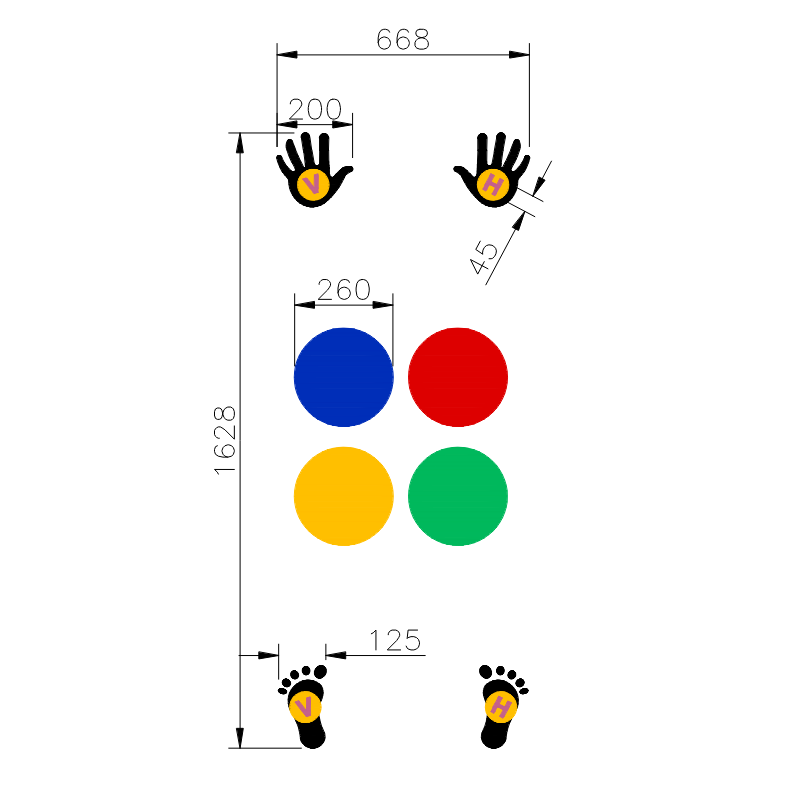 Twister Duo är ett utomhusspel med markeringar för händer och fötter som utmanar balans, rörlighet och samarbete. Spelet passar utmärkt för skolgårdar och parker och kan beställas i valfri kulör. Ange önskad färg vid beställning.