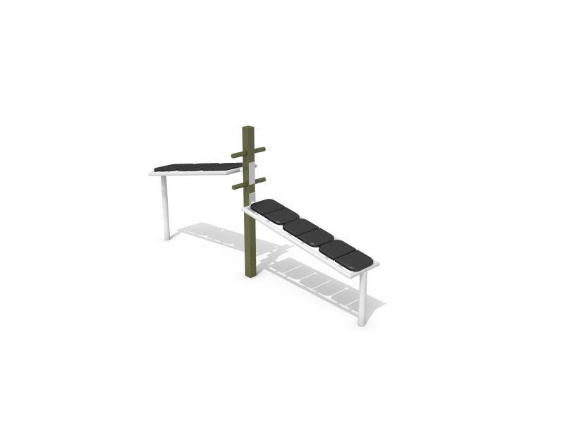 Dubbelbänk med två sitshöjder (0,53 m och 0,79 m). Utvecklar raka och sneda magmuskler samt bålstyrka.